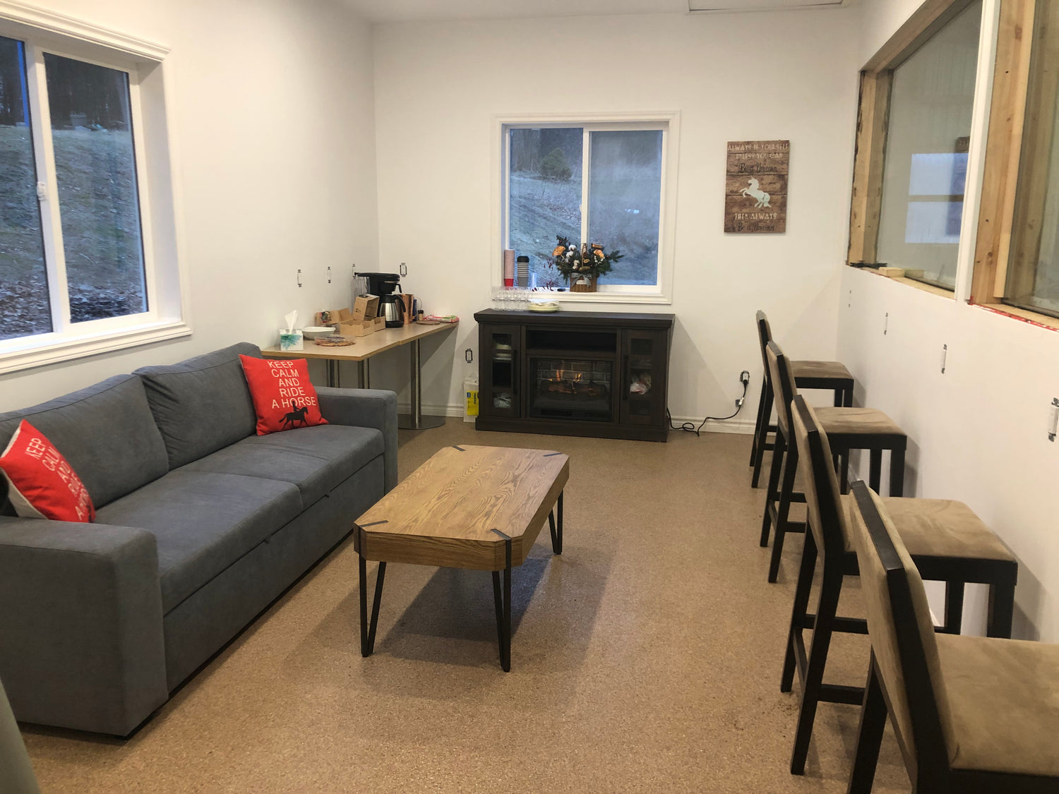 Our lounge is stocked with water, coffee and good vibes!