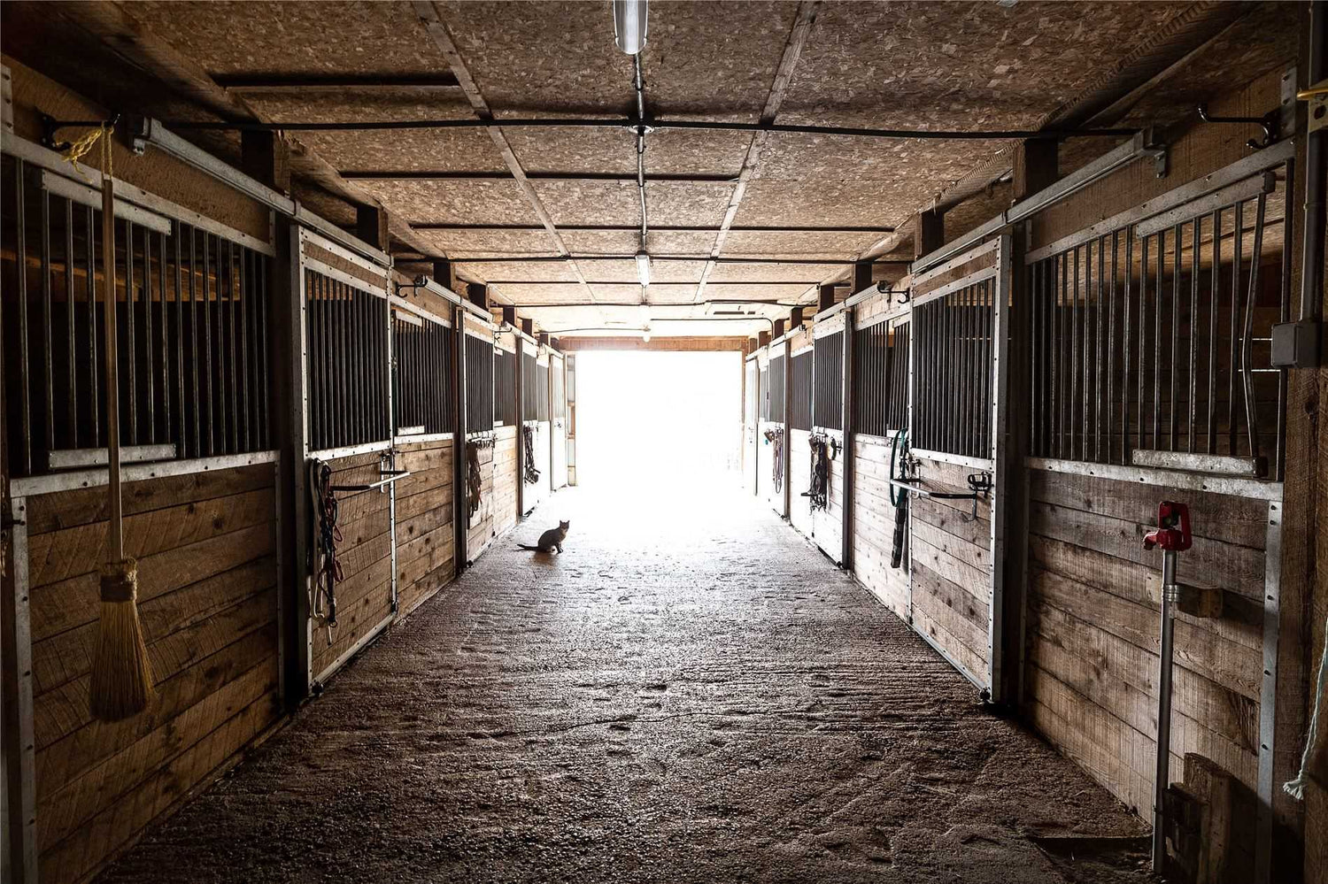 The barn is open and bright with tons of room for students and boarders to groom and tack their horses.